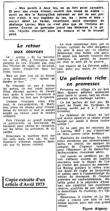 les débuts du RCS : voir deux copies ci-dessous, d’articles