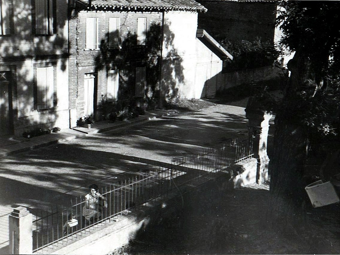 Route de Fonsorbes, la maman assise surveille son bambin. Heureuse époque.