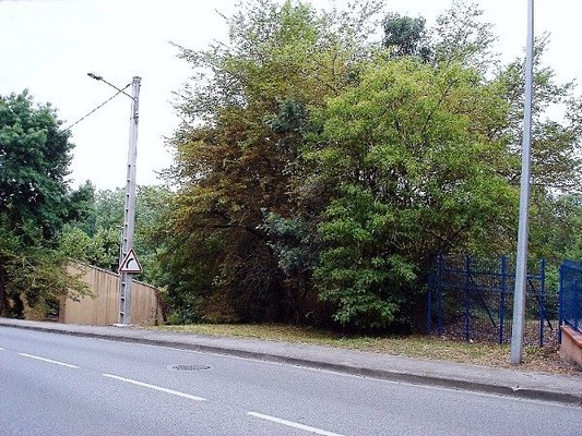A gauche, au premier plan la clôture du jardin de l'Instituteur
