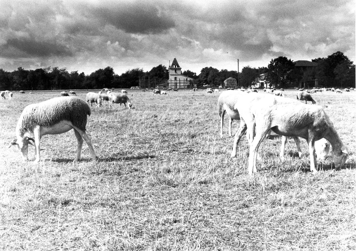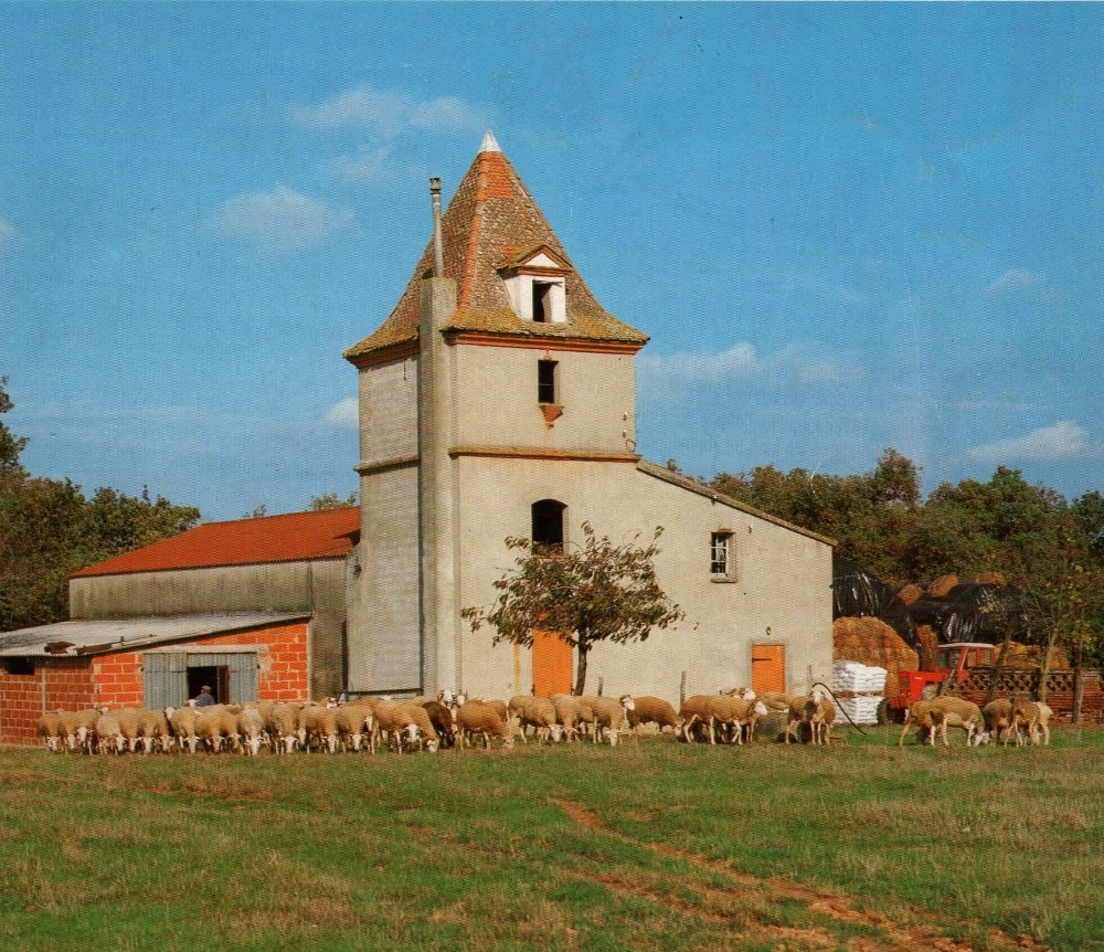 Les communs et la bergerie à gauche, au milieu la meule de paille, à droite la maison de maître