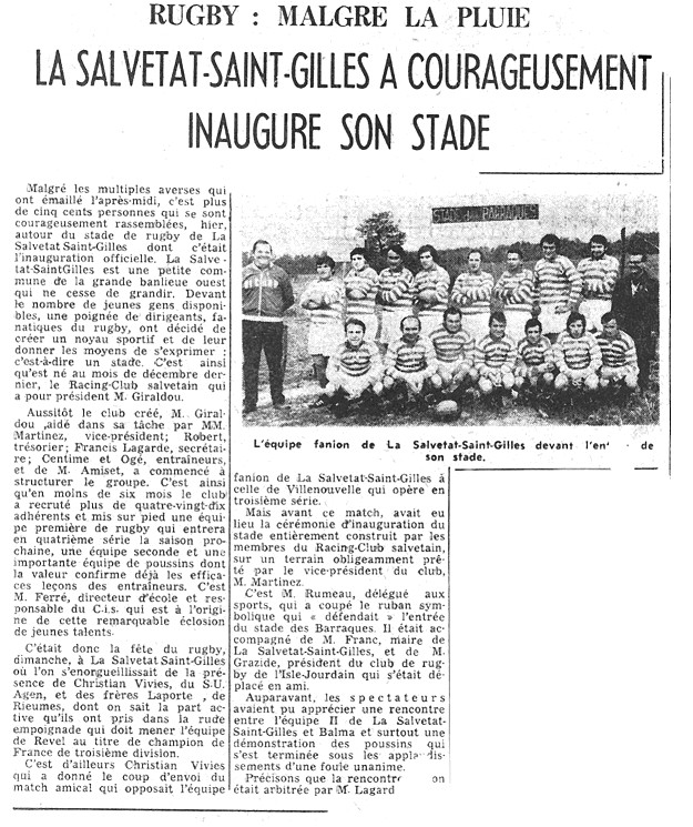 Copîe d'un autre article de la Dépêche du Midi de l'époque : Le Racing inaugure